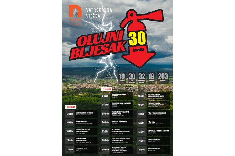 Terensku vježbu vatrogasnih operativnih snaga pod nazivom "Olujni bljesak 30" organizira Javna vatrogasna postrojba Novska u suradnji s županijskim vatrogasnim organizacijama te uz sudjelovanje pripadnika MUP-a, Hitne medicinske pomoći, Hrvatskog crvenog križa, Hrvatske gorske službe spašavanja i drugih službi.