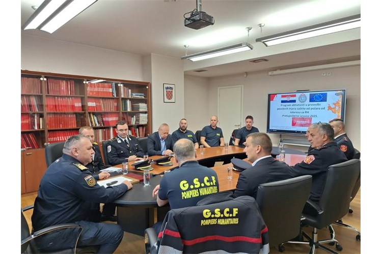 U uredu Hrvatske vatrogasne zajednice danas je održan sastanak glavnog vatrogasnog zapovjednika Slavka Tucakovića s predstavnicima Francuske skupine za pomoć u katastrofama (GSCF), koje je predvodio predsjednik organizacije Thierry Velu.