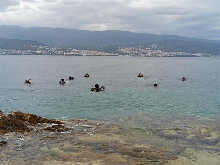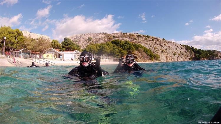No, Krk je u tom razdoblju pokazao svu nepredvidljivost jesenskog vremena — izmjenjivali su se kiša, jak vjetar, tuča i sunčani intervali - pa su se aktivnosti morale neprestano prilagođavati. Zahvaljujući fleksibilnosti i iskustvu instruktora, program je uspješno proveden, uz korištenje različitih lokacija diljem otoka koje su u datom trenutku omogućavale sigurniji zaron i uvježbavanje.